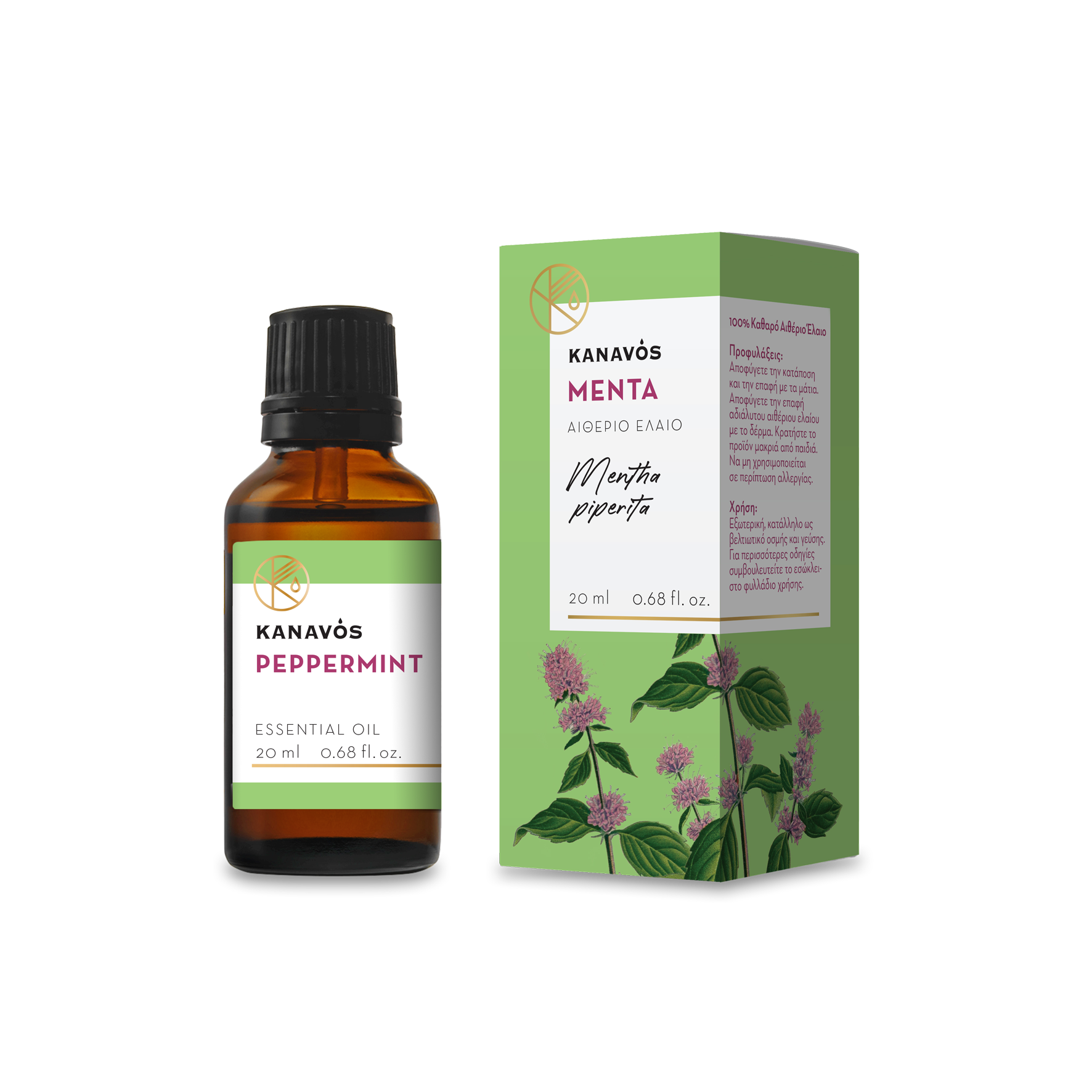 100% αιθέριο έλαιο Μέντας (Peppermint) το οποίο προέρχεται από απόσταξη των