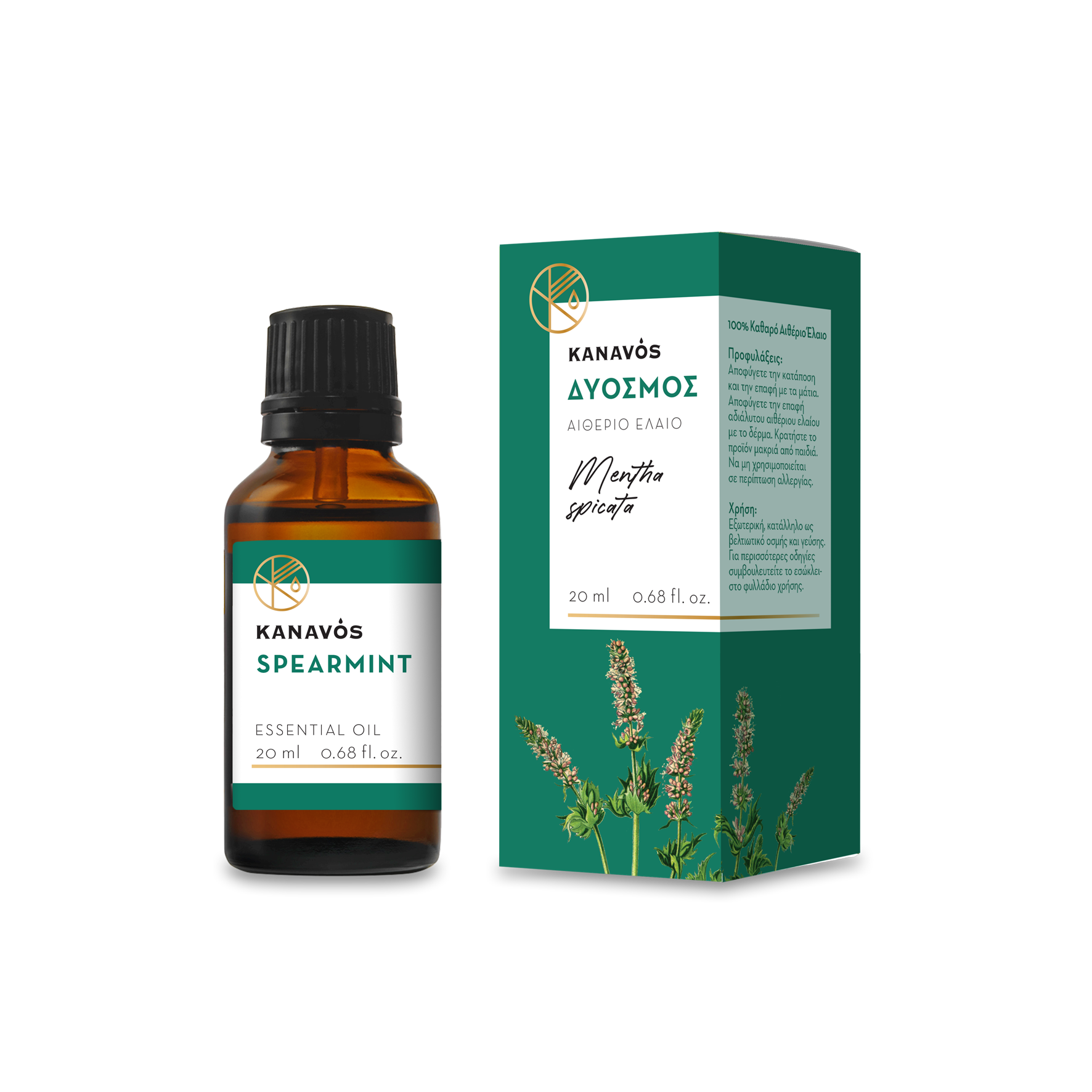 100% αιθέριο έλαιο δυόσμου (spearmint) προέρχεται από απόσταξη με ατμό των